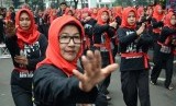 Gerak silat massal oleh guru-guru sekolah pada Bandung Lautan Silat di Balai Kota Bandung, Ahad (13/12). (Republika/Edi Yusuf)