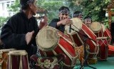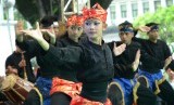Rampak gendang pencak silat pada Bandung Lautan Silat di Balai Kota Bandung, Ahad (13/12). (Republika/Edi Yusuf)