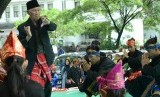 Penampilan salah satu sesepuh silat pada pada Bandung Lautan Silat di Balai Kota Bandung, Ahad (13/12). (Republika/Edi Yusuf)