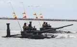 Sejumlah anggota TNI menunjukkan kemampuannya dalam Puncak Peringatan Hari Nusantara ke-15 di Pelabuhan Perikanan Samudera Lampulo, Banda Aceh, Aceh, Ahad (13/12). (Antara/Akbar Nugroho Gumay) (FOTO : Antara/Akbar Nugroho Gumay)