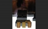 REPUBLIKA.CO.ID, JAKARTA -- Seorang model memperlihatkan logam mulia bermotif batik ketika peluncuran di Taman Mini Indonesia Indah (TMII) Jakarta, Rabu (16/12).