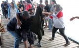Tim SAR dibantu warga berusaha mengevakuasi penumpang korban tenggelamnya KM Marina Baru 2B di Pelabuhan Lasusua Kolaka Utara, Sulawesi Tenggara, Ahad (20/12). (Antara/Jojon)
