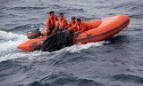 Tim SAR melakukan pencarian korban tenggelamnya KM Marina Baru 2B di Teluk Bone, Kolaka Utara, Sulawesi Tenggara, Ahad (20/12). (Antara/Jojon)
