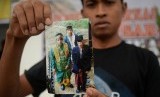 Keluarga penumpang menunjukkan foto saudaraya Andi Aso (kiri) penumpang KM Marina Baru 2B di posko pencarian, Pelabuhan Siwa, Kabupaten Wajo, Sulawesi Selatan, Senin (21/12). (Antara/Sahrul Manda Tikupadang)
