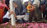 REPUBLIKA.CO.ID, MADIUN -- Sejumlah prajurit TNI AU melakukan prosesi pemakaman jenazah Letkol (Pnb) Marda Sarjono di Taman Makam Pahlawan, Madiun, Jawa Timur, Senin (21/12).