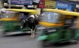 Seekor sapi di tengah keramaian lalu lintas Kota Bengaluru, India. (Reuters/Abhishek N. Chinnappa)