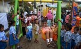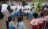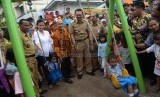 Gubernur DKI Jakarta Basuki Tjahaja Purnama bermain dengan anak-anak saat meresmikan Ruang Publik Terpadu Ramah Anak (RPTRA) di Karet Tengsin, Jakarta Pusat, Rabu (30/12). (Republika/Yasin Habibi) (FOTO : Republika/ Yasin Habibi)