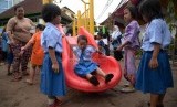 Anak-anak bermain di Ruang Publik Terpadu Ramah Anak (RPTRA) di Karet Tengsin, Jakarta Pusat, Rabu (30/12). (Republika/Yasin Habibi) (FOTO : Republika/ Yasin Habibi)