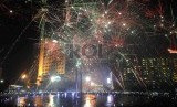 REPUBLIKA.CO.ID, JAKARTA -- Masyarakat menyaksikan pesta kembang api pergantian tahun 2015-2016 di kawasan Bundaran HI, Jakarta Pusat, Kamis (31/12).