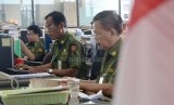 Sejumlah Pegawai Negeri Sipil (PNS) Pemrov DKI Jakarta melakukan aktivitas kerja pada hari pertama masuk kerja tahun 2016 di Badan Kepegawaian Daerah (BKD) gedung Balaikota, Jakarta, Senin (4/1). (Republika/Yasin Habibi)