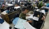 REPUBLIKA.CO.ID, JAKARTA -- Sejumlah Pegawai Negeri Sipil (PNS) Pemrov DKI Jakarta melakukan aktivitas kerja pada hari pertama masuk kerja tahun 2016 di Badan Kepegawaian Daerah (BKD) gedung Balaikota, Jakarta, Senin (4/1).