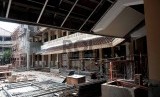 REPUBLIKA.CO.ID, JAKARTA -- Pekerja menyelesaikan pembangunan gedung SMPN 73 Jakarta, Tebet, Jakarta Selatan, Selasa (5/1).