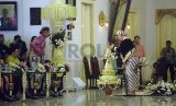 Tarian Bedoyo Angronakung pada prosesi jumenengan KBPH Prabu Suryodilogo menjadi KGPAA Paku Alam X di Bangsal Sewotomo, Puro Pakualaman, Yogyakarta, Kamis (7/1). (foto : Nico Kurniajati) (FOTO : foto : Nico Kurniajati)