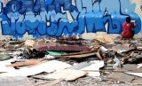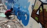 REPUBLIKA.CO.ID, JAKARTA -- Pemuda menggambar grafiti pada tembok bekas bongkaran di Kemayoran, Jakarta, Ahad (10/1).