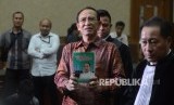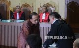 REPUBLIKA.CO.ID, JAKARTA -- Terdakwa tindak pidana korupsi dalam penyelenggaraan haji, mantan Menteri Agama Suryadharma Ali (kiri) menjalani sidang lanjutan dengan agenda pembacaan vonis di Pengadilan Tipikor, Jakarta, Senin (11/1).
