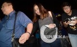 Jessica Kumala Wongso (27 tahun), teman Mirna, korban yang tewas minum kopi beracun usai menjalani pemeriksaan sebagai saksi di Krimum Polda Metro Jaya, Jakarta, Selasa (19/1) malam. (Republika/Yasin Habibi)