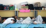 Sejumlah eks-anggota Gerakan Fajar Nusantara (Gafatar) beristirahat di Panti Sosial Bina Insan Cipayung, Jakarta Timur, Ahad (24/1). (Republika/Wihdan)