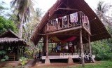 Bale Tau di pinggiran muara sungai dan tak jauh dari pantai Dusun Sanghyangkalang, Desa Batukaras, Kecamatan Cijulang, Kabupaten Pangandaran, Senin (25/1). (Republika/Fuji E Permana)