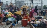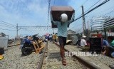 Seorang anak berjalan di rel kereta setelah si jago merah membakar rumahnya di Kampung Bandan, Jakarta Utara, Selasa (26/1). (Republika/Raisan Al Farisi)