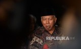 Mantan Ketua Majelis Pertimbangan PPP Bachtiar Chamsyah memberikan keterangan kepada media usai melakukan pertemuan dengan Wakil Presiden Jusuf Kalla di kediamannya, Jakarta, Selasa (26/1). (Repulbika/Raisan Al Farisi)