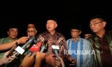 Mantan Ketua Majelis Pertimbangan PPP Bachtiar Chamsyah (tengah) bersama anggota majelis dan senior lainnya memberikan keterangan kepada media usai melakukan pertemuan dengan Wakil Presiden Jusuf Kalla di Jakarta, Selasa (26/1). (Republika/Raisan Al Faris (FOTO : Republika/Raisan Al Farisi)