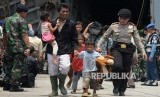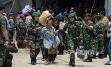 Petugas membantu warga eks anggota Gerakan Fajar Nusantara (Gafatar) yang baru turun dari KRI Banten saat tiba di Pelabuhan Kolinlamil Tanjung Priok, Jakarta Utara, Rabu (27/1) (Republika/Yasin Habibi). (FOTO : Republika/Yasin Habibi)
