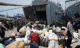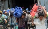 Sejumlah barang warga eks anggota Gerakan Fajar Nusantara (Gafatar) yang baru turun dari KRI Banten saat tiba di Pelabuhan Kolinlamil Tanjung Priok, Jakarta Utara, Rabu (27/1). (Republika/Yasin Habibi)
