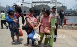 Petugas membantu warga eks anggota Gerakan Fajar Nusantara (Gafatar) saat tiba di Pelabuhan Kolinlamil Tanjung Priok, Jakarta Utara, Rabu (27/1). (Republika/Yasin Habibi) (FOTO : Republika/ Yasin Habibi)