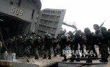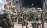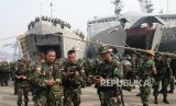 REPUBLIKA.CO.ID,JAKARTA -- Sebanyak 1300 prajurit dari dua Batalyon Yonif 312 dan Yonif 144 diberangkatkan naik KRI Teluk Ratai 509 di Dermaga Mako Kolinlamil, Jakarta, Rabu (27/1).