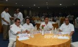 Calon Gubernur DKI dari Partai Gerindra M. Taufik, Sandiago Uno, M. Sanusi, dan Biem T. Benjamin (dari kiri ke kanan) berbincang saat acara penjaringan Cagub DKI di Jakarta, Rabu (27/1).(Republika/Raisan Al Farisi) (FOTO : Republika/Raisan Al Farisi)