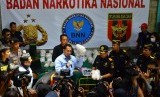 Kepala Badan Narkotika Nasional Komjen Budi Waseso memberikan keterangan saat meninjau lokasi penggerebekan gudang narkoba di Desa Pekalongan, Batealit, Jepara, Jawa Tengah, Kamis (28/1). (Antara/Yusuf Nugroho) (FOTO : Antara/Yusuf Nugroho)