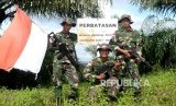 REPUBLIKA.CO.ID, BENGKAYANG -- Petugas Pengamanan Perbatasan Indonesia-Malaysia Pos Saparan melakukan patroli rutin di kawasan Saparan, Bengkayang, Kalimantan Barat, Kamis (28/1).