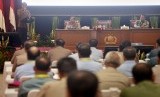 REPUBLIKA.CO.ID, JAKARTA -- Presiden Joko Widodo didampingi Kapolri Jenderal Polisi Badrodin Haiti dan Panglima TNI Jenderal TNI Gatot Nurmantyo, memimpin Rapim TNI-POLRI di Gedung PTIK Polri, Jakarta, Jumat (29/1).