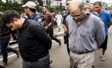 REPUBLIKA.CO.ID, JAKARTA -- Sejumlah tersangka warga negara asing ditangkap petugas BNN menuju mobil tahanan seusai penggerebekan di kawasan Tanah Abang, Jakarta, Jumat (29/1).