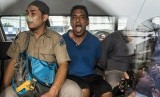 Petugas BNN mengawal tersangka warga negara asing (tengah) saat berada di dalam mobil tahanan seusai penggerebekan di kawasan Tanah Abang, Jakarta, Jumat (29/1). (Antara/M Agung Rajasa)