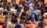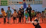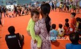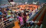 Anak-anak pengungsi eks-Gafatar bermain di Gedung Pusat Olahraga Persahabatan Korea Indonesia (POPKI), Cibubur, Jakarta Timur, Jumat (29/1). (Republika/Yasin Habibi)