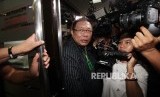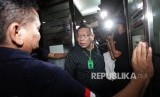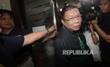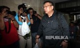 Yudi Wibowo, pengacara Jessica Wongso tersangka kasus pembunuhan Mirna tiba di Polda Metro Jaya, Jakarta, Sabtu (30/1). (Republika/Rakhmawaty La'lang)