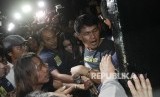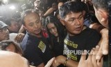 Tersangka kasus pembunuhan Wayan Mirna Salihin, Jessica Kumala Wongso (tengah), dikawal petugas menuju ruang tahanan di gedung Direktorat Reserse Kriminal Umum Polda Metro Jaya, Jakarta, Sabtu (30/1) malam.Republika/Rakhmawaty La'lang (FOTO : Republika/Rakhmawaty La'lang)