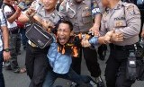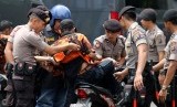 Polisi mengamankan seorang pria yang diduga membawa narkoba, ketika akan menghadiri pelantikan organisasi kepemudaan (OKP) di Medan, Sumatera Utara, Sumatera Utara, Ahad (31/1). (Antara//Irsan Mulyadi)