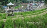 Warga memenuhi Teras Cikapundung, di pinggiran Sungai Cikapundung, Kota Bandung, Ahad (31/1). (Republika/Edi Yusuf)