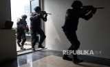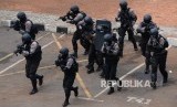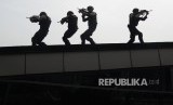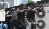 REPUBLIKA.CO.ID, JAKARTA -- Anggota Brimob menggelar simulasi penumpasan teroris di lapangan Polda Metro Jaya, Jakarta, Kamis (4/2).