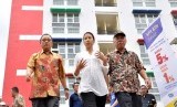 Menteri Pekerjaan Umum dan Perumahan Rakyat PUPR), Basuki Moeljohadi. Menteri BUMN, Rini Soemarno dan Dirut Bank BTN, Maryono meninjau Rusunawa Ungaran, usai peresmian dan penyerahan rusunawa untuk buruh pabrik ini, Ahad (7/2). (Republika/Bowo Pribadi)