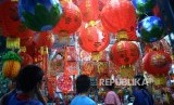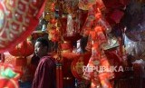 REPUBLIKA.CO.ID, JAKARTA -- Perayaan Imlek diramaikan oleh para pedagang yang menjual pernak-pernik khas Imlek di pasar tradisional Pancoran di Kawasan Petak Sembilan, Glodok, Jakarta Barat, Ahad (7/2).