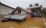 REPUBLIKA.CO.ID, LIMAPULUHKOTA -- Seorang warga berada di atap rumahnya saat banjir merendam Nagari Pangkalan, Kabupaten Limapuluhkota, Sumatera Barat, Senin (8/2).