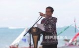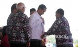 Presiden RI Joko Widodo usai menyampaikan pidato sambutannya pada acara puncak Peringatan Hari Pers Nasional (HPN) 2016 di Mandalika, Nusa Tenggara Barat, Selasa (9/2). (Republika/Rakhmawaty La'lang)