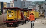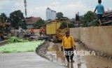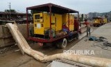 REPUBLIKA.CO.ID, JAKARTA -- Petugas melakukan penyedotan air dengan menggunakan mobil pompa di pinggiran proyek revitalisasi Ciliwung, Kampung Pulo, Jakarta, Kamis (11/2).