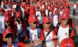 Anak-anak mengikuti acara kampanye Gerakan Nasional Anti-kekerasan terhadap Anak dan Perempuan di Senayan, Jakarta, Ahad (14/2). (Republika/Yasin Habibi)