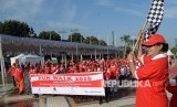 Menteri Pemberdayaan Perempuan dan Perlindungan Anak Yohana Yembise dalam acara kampanye Gerakan Nasional Anti-kekerasan terhadap Anak dan Perempuan di Senayan, Jakarta, Ahad (14/2). (Republika/Yasin Habibi)