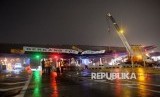 REPUBLIKA.CO.ID, BEKASI -- Atap gerbang Tol Cikunir 2 ambruk setelah diterjang hujan disertai angin kencang yang melanda wilayah Bekasi dan sekitarnya, Ahad (14/2). Akibat ambruknya atap gerbang tol Cikunir 2 ini maka untuk sementara gerbang tol tidak bisa digunakan hingga menunggu perbaikan selesai.