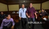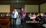 Terdakwa kasus korupsi dana bantuan sosial Sumatera Utara, Muhammad Yagari Bhastara (kanan) memasuki ruang sidang di Gedung Pengadilan Tipikor, Jakarta, Rabu (17/2).(Republika/Raisan Al Farisi) (FOTO : Republika/Raisan Al Farisi)